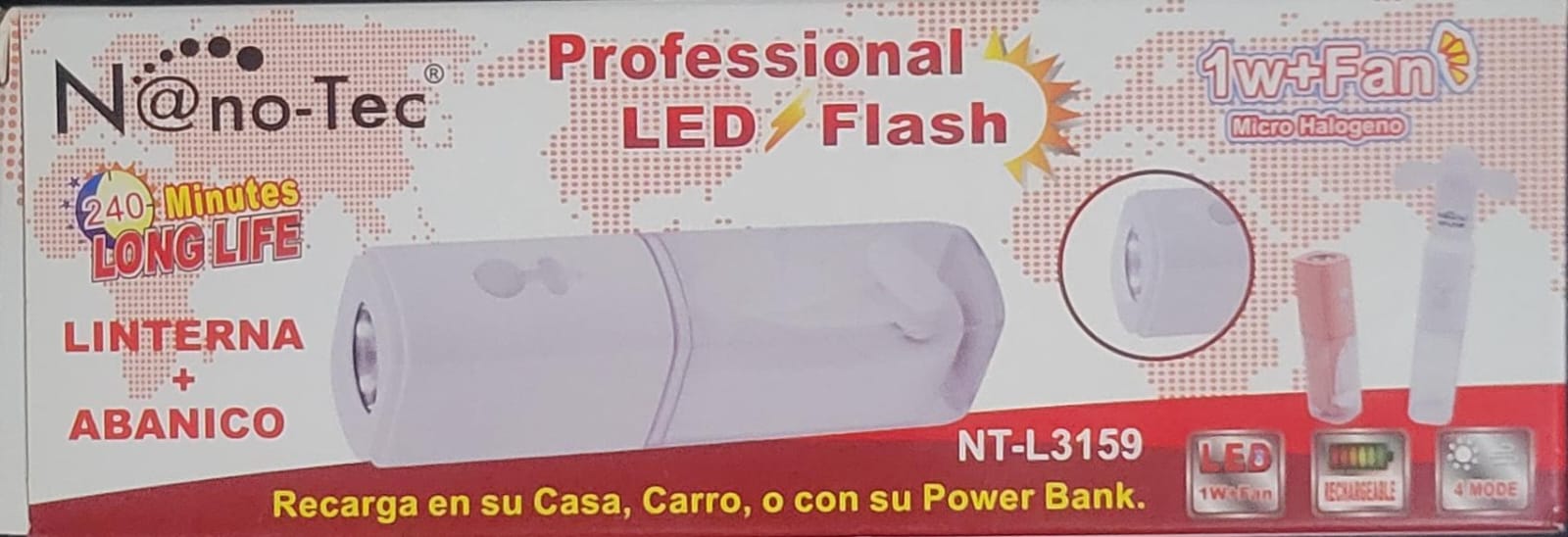 Linterna Nanotec LED de Alta Potencia con Ventilador Integrado – Portátil, Bajo Consumo, Ideal para Camping y Emergencias