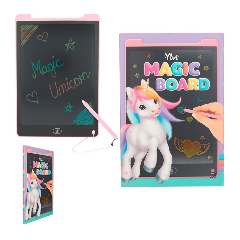 El Tablero Mágico Unicornio permite dibujar, escribir y borrar de manera fácil y reutilizable.